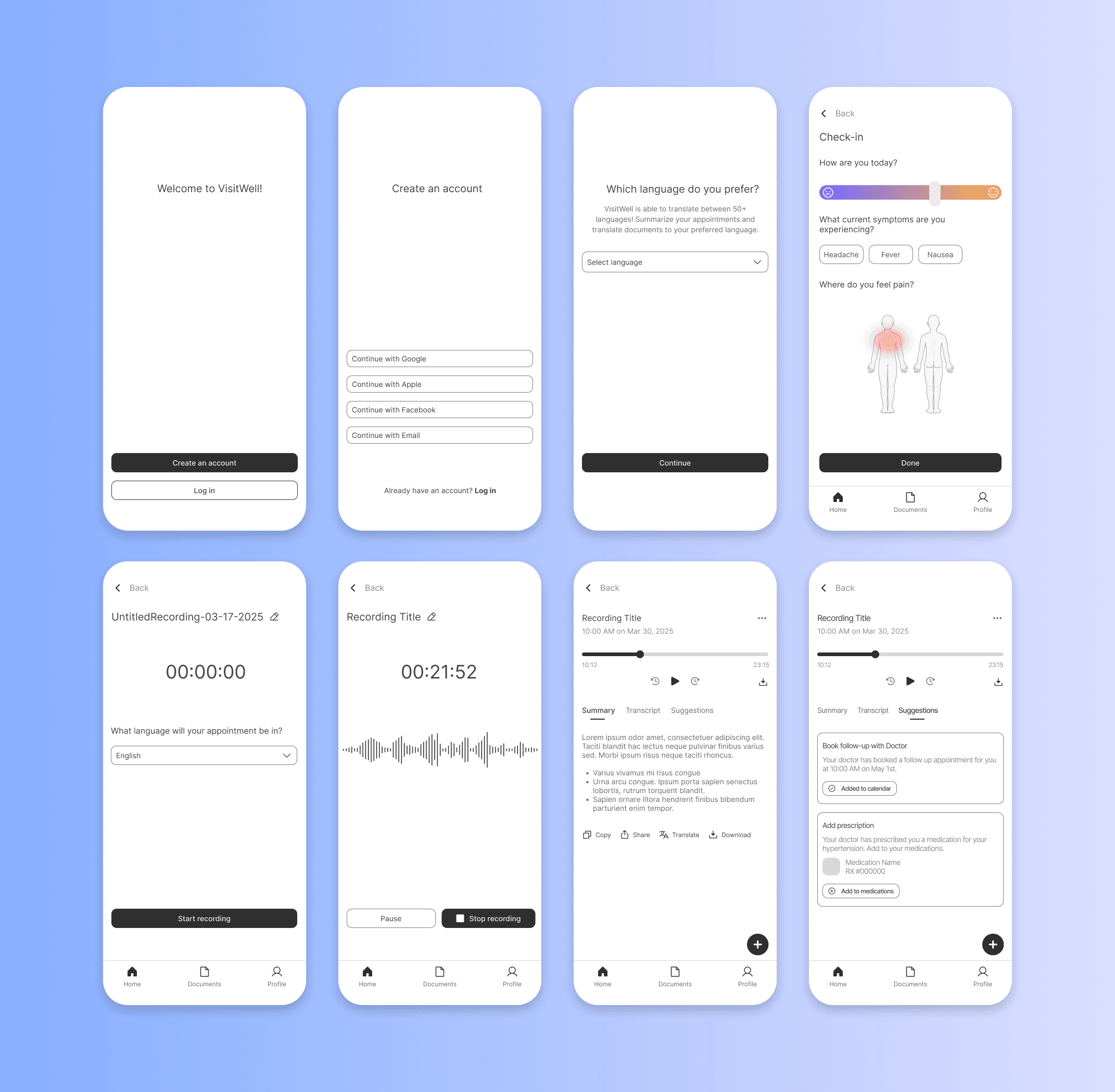 VisitWell is a 0→1 healthcare app aimed at reducing harm caused by language barriers for underserved patients.