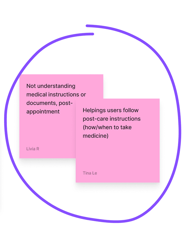 To get a sense and alignment of the core features to design, we turned our low-stakes Crazy 8s activity into Solution Sketches.