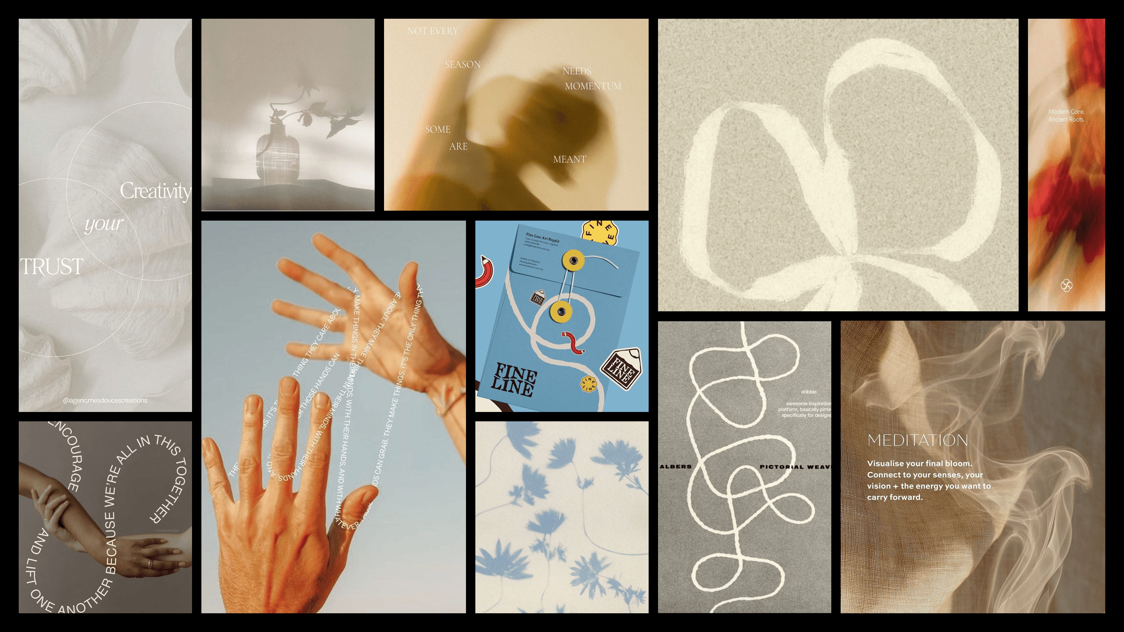 Starting with the branding, I turned the abstract concepts into reusable, scalable systems. I approached this by turning brand assets and moodboard into a cohesive design language.